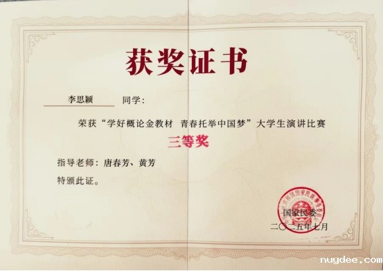 7月15日,由国家民委主办,教育部和共青团中央协办,中央民族大学承办的“学好概论金教材 青春托举中国梦”大学生主题演讲比赛圆满落幕,学校2024级临床4班李思颖同学荣获专科院校组决赛三等奖。