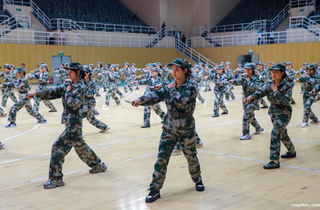 同学们展示了匕首操、警棍术、刺杀、擒敌拳,他们娴熟的动作,饱满的精神,展现出新时代青年学子昂扬向上的精神风貌和军事训练的优秀成果。学生代表王炎发言,分享了军训收获与感悟,表达了对教官和老师的感激之情并表示,将把在军训中养成的好作风、好习惯带到今后的学习生活中,以钢铁般的意志,攀登医学知识的高峰,以团结协作的精神,共同营造优良的学风,为传承创新发展中医药事业、守护人民健康贡献力量。