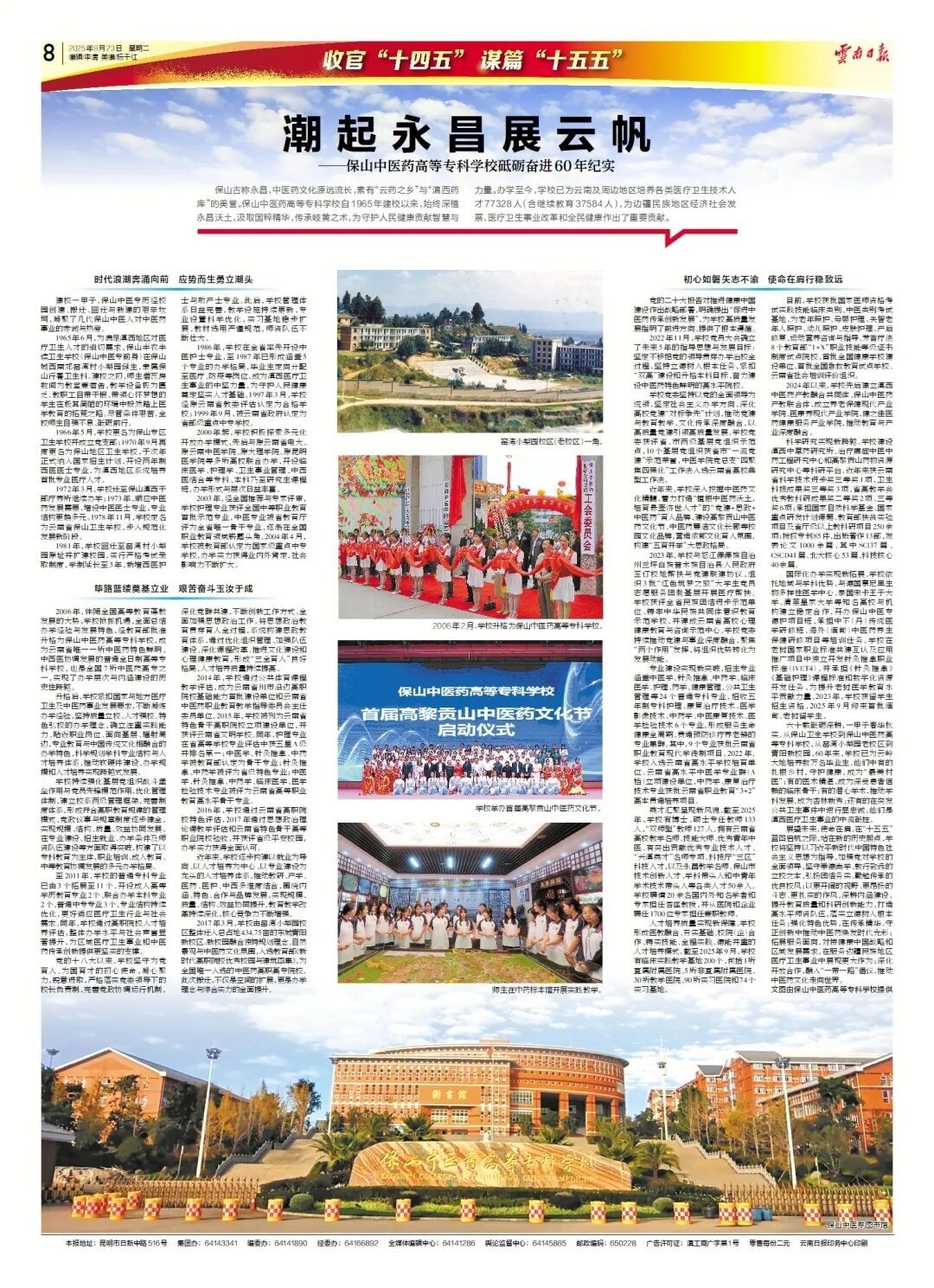 2024年以来,学校先后建立滇西中医药产教融合共同体、保山中医药产教联合体,成立养老保健现代产业学院、医康养现代产业学院,健之佳医药健康服务产业学院,推动教育与产业深度融合。