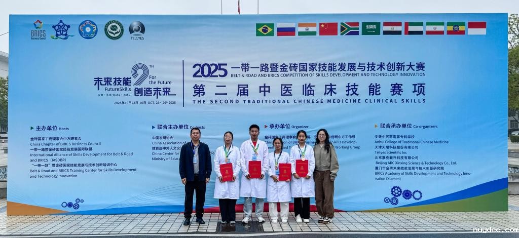 近日,2025一带一路暨金砖国家技能发展与技术创新大赛第二届中医临床技能赛项圆满落幕。学校中医学院学生陈东妹、邵仁宗、杨慧娟、龚自玉团队荣获三等奖。