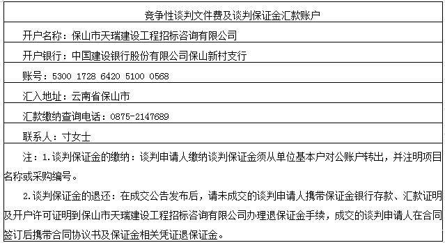 1.本项目谈判保证金金额:¥5000.00元。
