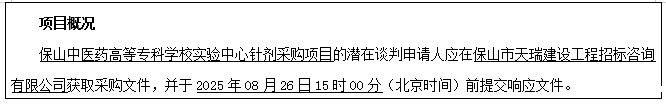 (1)提交谈判响应文件方式:请谈判申请人在谈判响应文件递交的截止时间(即2025年08月26日15时00分)前,请各谈判申请人将电子谈判响应文件(*PDF格式,电子文件名称要求:XX单位XX项目谈判响应文件)加密后发送至采购代理机构指定电子邮箱(bstrzb@126.com)进行递交远程谈判响应文件。逾期未发送的电子谈判响应文件(以邮箱收到的时间为准),不予接受。电子谈判响应文件要求:请各谈判申请人按照竞争性谈判文件要求进行编制谈判响应文件,谈判响应文件签字盖章后扫描成PDF格式的电子谈判响应文件并进行加密。