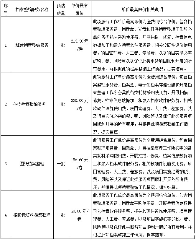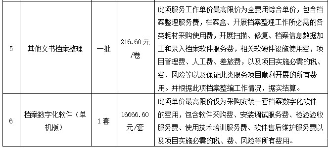 4.拟采购的货物或服务的预算金额:10.00万元,此预算为合同履行期限内开展各类档案整编服务和采购档案数字化软件的预估金额,并根据实际开展的各类档案整编服务数量和采购一套档案数字化软件据实结算。